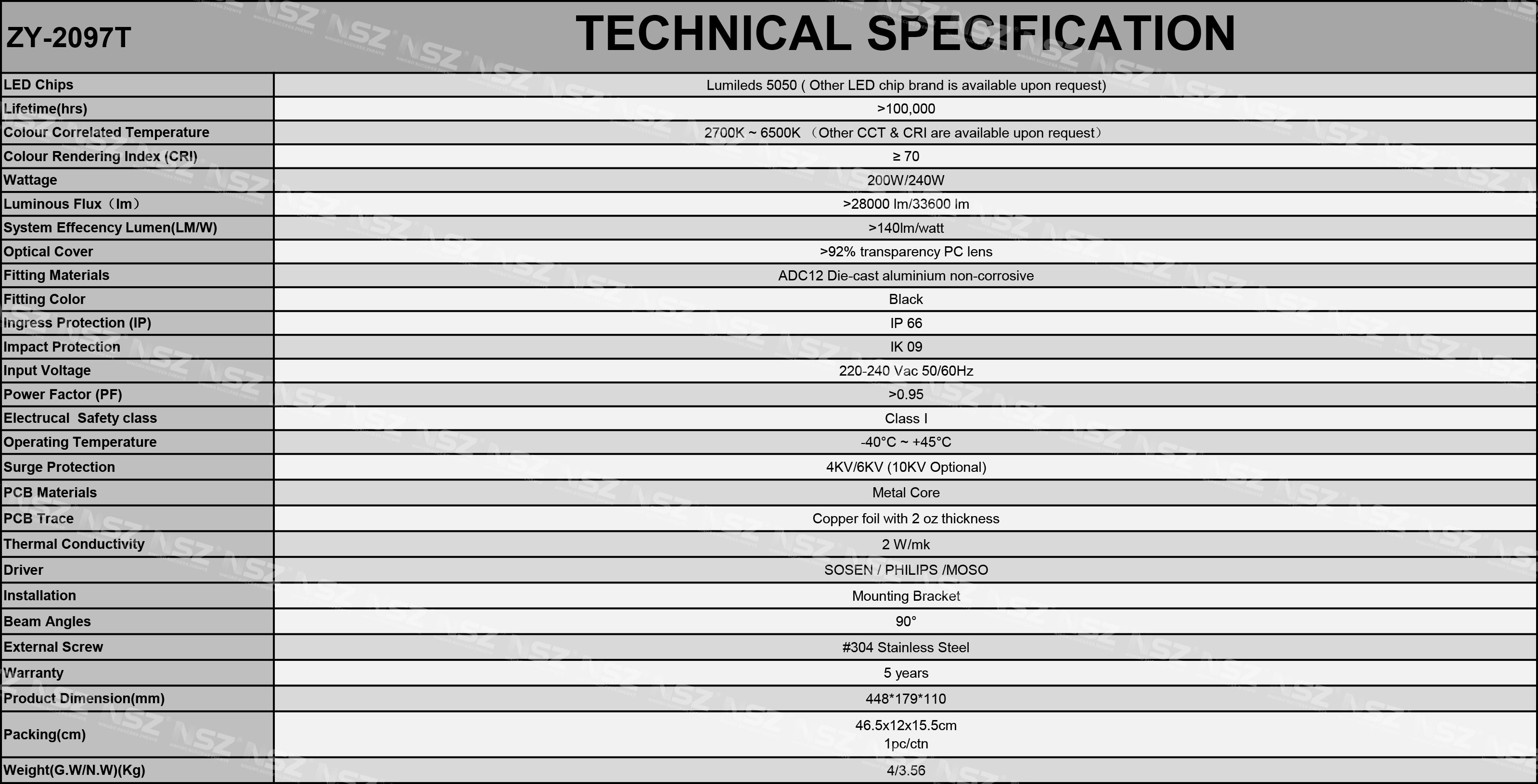 Il-wattage li jinkludi dawl tal-mina LED 200W, dawl tal-mina LED 240W.